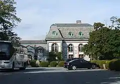 ![]() Belcourt's east façade, originally rear of the castle, faces Bellevue Avenue | |