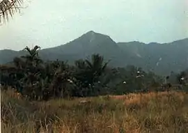 ![]() The compound Belirang-Beriti volcano rises above Mubai village. | |