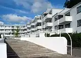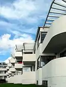 The Bellavista housing estate designed by Arne Jacobsen is the clearest example of Bauhaus architecture in Denmark.[1] Completed in 1934, the estate is located just north of Copenhagen, in Klampenborg, Gentofte Municipality, next to Jacobsen's Bellevue Beach, which had been completed a couple of years earlier.[1]