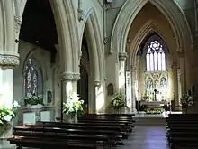 St Benedict's chapel, completed in 1875, is shows the monastic founder in the central reredos.[6]