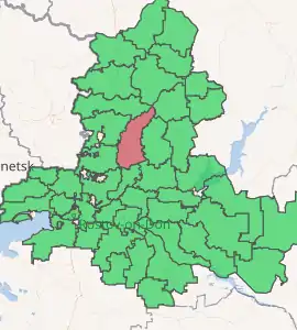 Belokalitvinsky District (Russian: Белокалитвинский райо́н) is an administrative[1] and municipal[6] district (raion), one of the forty-three in Rostov Oblast, Russia. It is located in the center of the oblast. The area of the district is 2,649.8 square kilometers (1,023.1 sq mi).[2] Its administrative center is the town of Belaya Kalitva.[1] Population: 102,039 (2010 Census);[3] 28,294 (2002 Census);[8] 28,009 (1989 Census).[9] The population of Belaya Kalitva accounts for 42.8% of the district's total population.[3]