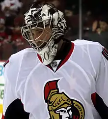 On February 26, 2012, Bishop was traded to the Ottawa Senators in exchange for a second-round pick in the 2013 NHL Entry Draft.[16] A kitchen accident resulted in Senators' starting goaltender Craig Anderson being injured indefinitely with a hand laceration, a situation that may have hastened Bishop's move to Ottawa.[17] At the time of the trade, Bishop was the AHL's top goaltender with a 24–14–0 record, a 2.26 GAA, a .928 save percentage and an AHL-leading six shutouts through 38 games.[18] Bishop made his Senators debut against the Tampa Bay Lightning on March 6, 2012, in a game which Ottawa won 7–3. He earned his second win in as many starts in a 4–1 win over the New York Rangers. He finished the season with a 3–3–2 record and 2.48 GAA in ten games played with Ottawa.[13]