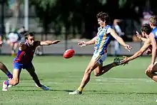 In 2013 Ben as well as being elected co-captain by his peers, Ben, as a recognition of his skill and experience, was contracted to roles with the Essendon VFL Football Club as a midfield assistant coach and in development-coaching.[30][31] Ben was noted to be amongst the best on ground in the loss to Casey Scorpions on 20 April 2013.[32] Ben was listed as best on ground for his club in the Essendon VFL (17.11.113) loss to Collingwood VFL (18.14.122) on 25 May 2013.[33] Ben was listed best on ground for his club in Essendon's (13.10.88) loss to Geelong Cats (18.18.126) on 1 June 2013.[34] Ben was listed as best on ground for his club in Essendon's (21.17.143) win over Sandringam (12.9.81) on 8 June 2013.[35] He was named amongst the best on ground in Essendon's (6.9.45) loss to Williamstown (15.11.101) on 16 June 2013.[36] He was named amongst the best in Essendon's (18.10.113) win over Northern Blues (6.13.49) on 7 July.[37] Mid-season Ben was rated number 3 amongst the top 50 VFL players by Football Nation.[38] Ben scored a goal and was named amongst the best in Essendon's (9.15.69) win over Casey Scorpions (9.4.58) on 21 July 2013.[39] Ben kicked 3 goals and was named amongst the best in Essendon's (21.19.145) win over Bendigo FC (5.6.36) on 27 July 2013.[40] Ben scored 5 goals and was best on ground (described as 'tearing the game apart'[41]) in Essendon's (16.12.108) win over Sandringham (9.11.65) on 3 August 2103.[42][43] Ben was named amongst the best in Essendon's (18.15.123) win over Frankston (7.10.64) on 17 August 2013.[44] Ben kicked two goals and was listed amongst the best in Essendon's (18.17.125) win over North Ballarat (13.8.86) on 23 August 2013.[45] Ben won Best and Fairest for Essendon VFL in 2013.[46]