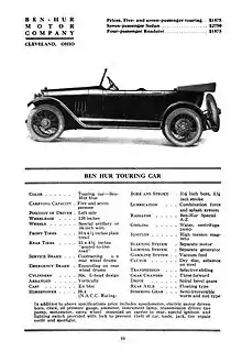 The Ben-Hur Motor Company was incorporated 1916 in the state of Delaware, with the cars being built by L. L. Allyn in Willoughby, Ohio.