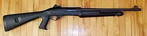 The Benelli Supernova is a pump action shotgun popular for hunting, self-defense and law enforcement, made by Italian firearm manufacturer Benelli Armi SpA. The Supernova's most innovative and distinguishing feature is a one-piece receiver and interchangeable stock with shim kit. It is known for its large trigger guard, extreme durability and reliability.[1]