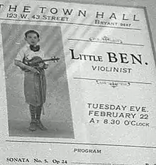 Benjamin Steinberg was born in Baltimore, Maryland, on March 15, 1915, to Moses and Annie Steinberg. His parents were from Odessa (then part of Czarist Russia, now the Ukraine) and had fled to the United States following the anti-Jewish Odessa pogrom of 1905 and the failed Russian Revolution that year. Benjamin first performed violin on the concert stage as an 11-year old in 1927.[1]