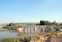 The Bent Bridge or Curved Bridge (Turkish: Eğri Köprü) is a stone arch bridge over the Kızılırmak River 3 km (1.9 mi) southeast of the center of Sivas in Central Anatolia, Turkey. The bridge lies in the city's Kardeşler ward, on the road from Sivas to Malatya and onward to Syria and Mesopotamia.[1][2]
