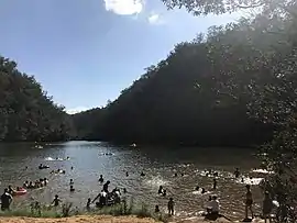 Bents Basin is a protected nature reserve and state park near Wallacia, New South Wales, Australia in the Sydney metropolitan area. The lake basin, which formed at the efflux of the Nepean River from the Hawkesbury Sandstone (Sydney sandstone) gorge, is a popular swimming hole with a camping area and an education centre used by local school groups. Also featuring a large woodland area and native wildlife, the reserve is the only picnic area along the Nepean River and it is one of the most popular water-based picnic parks in Greater Western Sydney.[3]