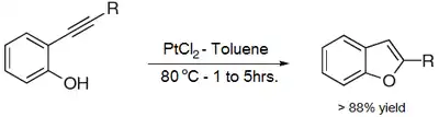 - Fürstner, Alois & Davies, Paul (2005). "Heterocycles by PtCl2-Catalyzed Intramolecular Carboalkoxylation or Carboamination of Alkynes". Journal of the American Chemical Society. 127 (43): 15024–15025. doi:10.1021/ja055659p. hdl:11858/00-001M-0000-0025-AA5A-1. PMID 16248631.