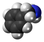 Benzylamine is an organic chemical compound with the condensed structural formula C6H5CH2NH2 (sometimes abbreviated as PhCH2NH2 or BnNH2). It consists of a benzyl group, C6H5CH2, attached to an amine functional group, NH2. This colorless water-soluble liquid is a common precursor in organic chemistry and used in the industrial production of many pharmaceuticals. The hydrochloride salt was used to treat motion sickness on the Mercury-Atlas 6 mission in which NASA astronaut John Glenn became the first American to orbit the Earth.