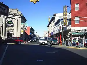 Currently the longest commercial avenue in the state, boasting over 300 retail stores and restaurants, many of which became the outlet for Cuban entrepreneurs who had immigrated to Union City,[2] and West New York, for which the thoroughfare became known as "Havana on the Hudson".[3] Also known as the "Miracle Mile", Bergenline's largest concentration of retail and chain stores begins at the intersection of 32nd Street and continues north until 92nd Street in North Bergen, and while it is a narrow one-way, southbound street throughout most of Union City, it becomes a four lane, two-way street at 48th Street, just one block south of the town’s limit. Bergenline Avenue is also used as the route for local parades,[4][5] such as the annual Memorial Day Parade[6] Cuban Day Parade[7] and Dominican-American Parade.[8]