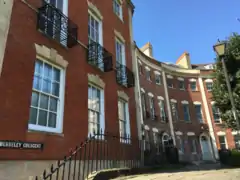 The Crescent is located within the Park Street & Brandon Hill conservation area [6] between Berkeley Square and the Triangle in the Clifton area of Bristol. The postcode is within the Hotwells and Harbourside ward and electoral division, which is in the constituency of Bristol West.[7] Quarter runs serviced apartments, called Berkeley Suites at 6 Berkeley Crescent. The old Lyndale Hotel was situated at the end of the terrace at 19 Berkeley Square.[8][9]