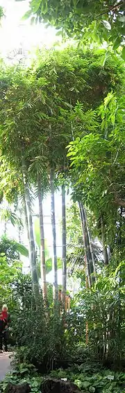 The best-known part of the garden is the Great Pavilion (Großes Tropenhaus). The temperature inside is maintained at 30 °C and air humidity is kept high. Among the many tropical plants it hosts a giant bamboo.[2]