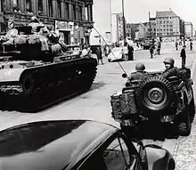 US officers of the Berlin garrison drew up a plan to pull down the wire and barricades with bulldozers. This, however, was overruled by the troop commander, Brigadier General. Frederick O. Hartel.[18][19]