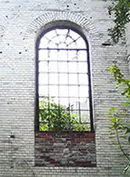 In the early 1940s, a tinned goods firm and the foundry company, Pemietsreider, who made weapons for the German war effort, moved in. Pemetsrieder (previously located in Moabit) was based in the Wiesenburg until 1980. In 1944/45, large parts of the men's dormitories and the washrooms were destroyed by Allied bombing. The administration house and parts of the women's shelter escaped undamaged. Traces of the conflict are still visible; bullet and grenade splinter holes from the last days of the war dot the walls. The building lay on the last main battle line of the surrounded Third Reich capital: the circle line along its northern perimeter, defended by broken-down soldiers from the front, the home guard, policemen and Hitler Youth.