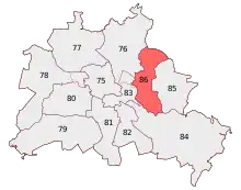 Berlin Lichtenberg is an electoral constituency (German: Wahlkreis) represented in the Bundestag. It elects one member via first-past-the-post voting. Under the current constituency numbering system, it is designated as constituency 86. It is located in eastern Berlin, comprising the Lichtenberg borough.[1]