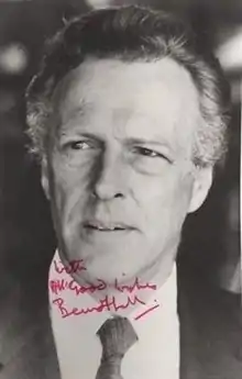 Horsfall appeared in many television and film roles including: the title role in Campion, (1959-1960) Pathfinders to Mars (1960), the second sequel to Target Luna, Guns at Batasi (1964),[3] On Her Majesty's Secret Service (1969),[4] Beasts, Enemy at the Door (ITV, 1978–1980),[5][6] Gandhi (1982),[7] an episode of The Jewel in the Crown (ITV, 1984),[8] the character Frankland in The Hound of the Baskervilles (ITV, 1988),[9] and the character Balliol in Braveheart (1995).[10] His other roles included portraying British barrister Melford Stevenson in a 1980 Granada Television dramatisation of the 1955 case of Ruth Ellis.[11]