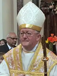 Bernard Longley KC*HS (born 5 April 1955) is an English prelate of the Roman Catholic Church. He was named the Archbishop of Birmingham on 1 October 2009, and installed by Bishop David McGough and presented with his crozier by Archbishop Vincent Nichols, his predecessor, in St Chad's Cathedral at a Solemn Mass on 8 December 2009, the Feast of the Immaculate Conception, attended by 600 people. Previously he was an Auxiliary Bishop of Westminster.[3]