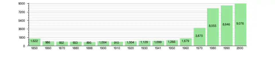 Bernex has a population (as of December 2019) of 10,244.[9] As of 2008, 19.9% of the population are resident foreign nationals.[10] Over the last 10 years (1999–2009 ) the population has changed at a rate of 11.2%. It has changed at a rate of 7.3% due to migration and at a rate of 1.5% due to births and deaths.[11]