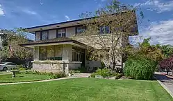 The Berthold Spitz House is a historic house in Albuquerque, New Mexico, which is significant as the city's best example of Prairie School architecture.[3][4] It was built around 1910 by Berthold Spitz (c. 1860–1933) and his wife Fannie Schutz Spitz (1873–1943). Berthold was a German Jewish merchant who was born in Bohemia (present-day Czech Republic) and immigrated to Albuquerque around 1880. He ran a successful dry goods business and made a few forays into local politics before being appointed as the city's postmaster in 1921.[5] Fannie grew up in El Paso and was notable as the inventor of the first commercial pine nut shelling machine. She was described by the Albuquerque Journal as "the greatest known authority on the piñon nut and its possibilities".[6] The house was designed by Henry C. Trost of the El Paso firm of Trost & Trost. It was listed on the New Mexico State Register of Cultural Properties in 1975[2] and the National Register of Historic Places in 1977.[1]