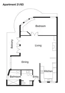 Most apartments are 1 or 2 bedrooms, tightly planned with a small kitchen, and bathroom, with the emphasis being on the living and bedroom spaces. Most apartments maintain a strong visual connection to the outside through balconies, opening to the land along or on upper levels sweeping views north towards the Yarra River and over the flat suburb of Richmond beyond.