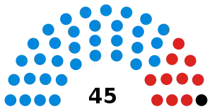 The May 2018 elections returned a council composition of 34 Conservative Party and 11 Labour Party.[6]