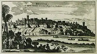 In the 3rd century, Bharuch port was mentioned as Barugaza.[4] Arab traders entered Gujarat via Bharuch to do business. The British and the Dutch (Valandas) noted Bharuch's importance and established their business centres here.