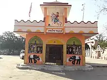 As per the folklore, Bhathi was the second son of Thakore Takhatsinghji of fagvel born in Rathod branch of Rajput clan. While he was marrying Kankuben and was completing the fourth of the seventh fera, he came to know that Muslim king of Kapadvanj, receiving a complaint against him had impounded the mother Gaus (Cow) of the village. Bhathiji immediately left riding a horse with his sword, leaving the marriage incomplete. He released the cow and defeated the army, but his head was severed from his body. He died as martyr but was able to free the cattle.[1] There are folk songs of how Bhatihiji's headless body continued to fight the Muslim raiders till all of them were wiped out.[2]