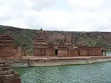![]() Bhutanatha temple complex at Badami, 7th century, with the open hall (11th century) extending to the lake. | |