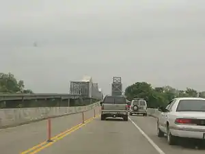 ![]() On the northbound bridge; the bridge to the left is the newer southbound bridge, undergoing the 2007–08 renovation. The northbound bridge was reconfigured for two northbound lanes and one southbound lane, leaving one southbound lane on the southbound bridge. | |