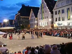 In three evenings throughout the festival week, various dancing groups perform the "dance throughout the centuries" in Biberach's market place. In the dancing event with live music, the groups guid the audience though different eras in dancing, covering farmer's dances, renaissance dance and dances from the rococo era but also modern dances like charleston, rock'n'roll and break dance.
