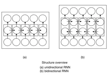 The principle of BRNN is to split the neurons of a regular RNN into two directions, one for positive time direction (forward states), and another for negative time direction (backward states). Those two states’ output are not connected to inputs of the opposite direction states. The general structure of RNN and BRNN can be depicted in the right diagram. By using two time directions, input information from the past and future of the current time frame can be used unlike standard RNN which requires the delays for including future information.[1]