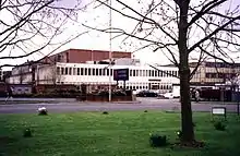 As with each series since Big Brother 2002, the programme was filmed at Elstree Studios in Borehamwood, Hertfordshire.[11] A total of 27 editing suites, manned by over 300 members of staff, were situated in the "George Lucas Stage" to produce the programme.[11] In the 18 May issue of Star magazine, aerial photographs of the House were published, showing the garden under construction.[15] Official pictures of the House interior were released by Channel 4 on 1 June, showing the entrance stairway, living room and garden.[16] The entrance stairway had images of insects on its walls whilst the garden and living room had a science fiction theme; the former included a bus stop as the designated smoking area.[17] On 3 June, Metro published an image of the Diary Room, which has a multicoloured chair and wall pattern.[18] There was also a shipping container-based bathroom, a sitting room with red sofas, a wood panelled kitched with purple, black and white fittings and a bedroom with splats of paint covering the walls.[12] The house contained 44 cameras, 75 two-way mirrors and 57 fixed microphones, as well as individual microphones for each housemate.[11]
