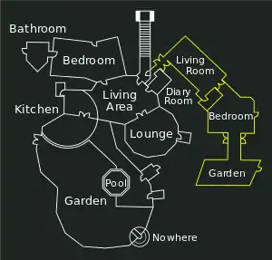 The House Next Door was a group of rooms connected to the original house via the Diary Room. On 30 June, five new housemates entered this house. The public, instead of voting for a housemate to be evicted, voted to transfer one of the current housemates to also live in the new house.[2] Aisleyne was voted to be moved into the House Next Door along with 5 new housemates; Jonathan, Spiral, Jennie, Michael and Jayne.[3] Aisleyne was then required to evict another housemate, and chose Jonathan.[4] The House Next Door was also used later on in the series. In Week 10 it featured in the "Prison Task" and in Week 12 it housed four previous evictees, Grace, Mikey, Lea and Nikki who had been voted by the public to re-enter the House.