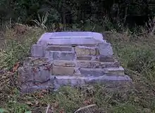 The Norton Gristmill is the park's most prominent historical feature. The mill was built in 1825 by Tink McCoy and later purchased by Lewis Norton. The mill is now mostly a replica, although the original mill race and millstones remain.[15] Other historical features include Indian Rock, atop Big Ridge, where a plaque marks the site of the 1794 ambush of Peter Graves. A small monument at the now-disinterred Lon Sharp Cemetery in the northeast section of the park recalls the 18th-century Sharp's Station, which was believed to have been located near the cemetery. Norton Cemetery houses the grave of Maston Hutcheson (1826–1910), who according to local lore is responsible for hauntings in the area. A few minor remains of Hutcheson's house are still visible at the junction of the Ghost House Loop Trail and the Big Valley Trail connector.