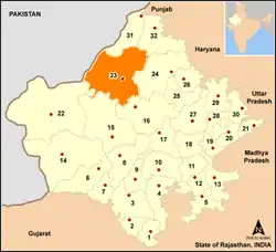 ![]() Location of Bikaner district in Rajasthan | |