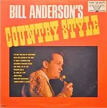 Bill Anderson's Country Style is a compilation album by American country singer-songwriter Bill Anderson. It was released in March 1968 via Vocalion Records and was produced by Owen Bradley. It was Anderson's first release for Vocalion and the fourth compilation issued in his career. A total of ten tracks were included in the package containing all previously-recorded material.