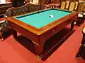 A billiard table the bed of which can be flipped over for use as a regular table; produced by Heinrich Seifert & Söhne around 1910.
