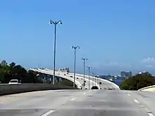 The Biloxi Bay Bridge is a bridge in the U.S. state of Mississippi which carries U.S. Route 90 (US 90) over Biloxi Bay between Biloxi and Ocean Springs. Though the bridge's ballast and accompanying railroad track was heavily damaged by Hurricane Katrina in August 2005, the structure remained and subsequently underwent major repairs.[1] It reopened to traffic on November 1, 2007. The span carries 6 lanes of traffic as well as a 12-foot (3.7 m) path for pedestrians and bicyclists on the Gulf side of the bridge.