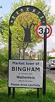 The Romans built a fortress at Margidunum (Bingham) and a settlement at the river crossing at Ad Pontem (East Stoke) on the Fosse Way, which ran between Isca (Exeter) and Lindum (Lincoln).[2] The south-east of Nottinghamshire later formed the wapentake of Bingham. Bingham acquired a market charter in 1341.