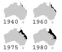 Cane toad (introduced into Australia 1935) spread from 1940 to 1980: it was ineffective as a control agent. Its distribution has continued to widen since 1980.