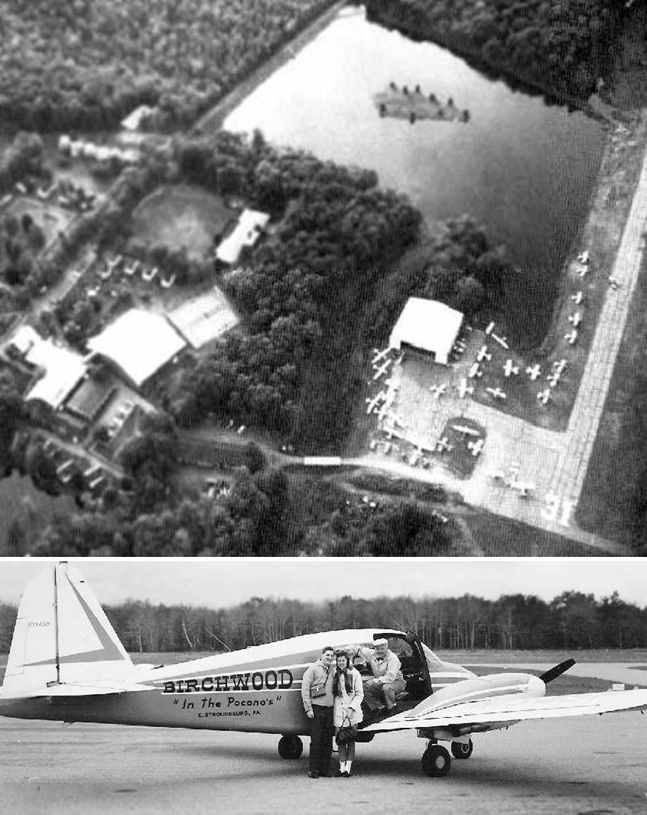 The resort and airpark were originally owned by a Pan Am pilot and founder of Pocono Airlines, the late[1] Walter E. ("Wally") Hoffman Jr.[2] and his former wife Gail.