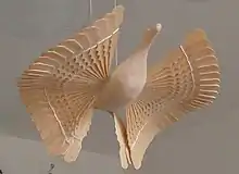 Wood chip bird is a carved wooden item with thin wavy plumage of the wings. The plumage and tail of these birds were usually made of split pine, that is why the birds were called "wood chip". The place of the wooden toy origin in the form of a bird is the Arkhangelsk region. It's also called a "Pomor dove".[1]