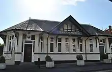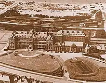 In 1881 the hotel was completely refurbished and the grounds were reduced to 5 acres (2.0 ha), as the hotel had previously gone into liquidation, because it was not accessible by road or tram. The Southport & Cheshire Lines Extension Railway (SCLER) opened Birkdale Palace railway station adjacent to the hotel in 1884.[3] A variety of baths were installed, a pipe built to draw in salt water from the sea and a lift installed to all floors. It re-opened with over 60 staff, as a hydropathic establishment to rival the very successful Smedley Hydro.[4][5] Later, electric lighting was installed, produced by a steam driven generator. By 1910 the hotel was for sale due to financial difficulties.