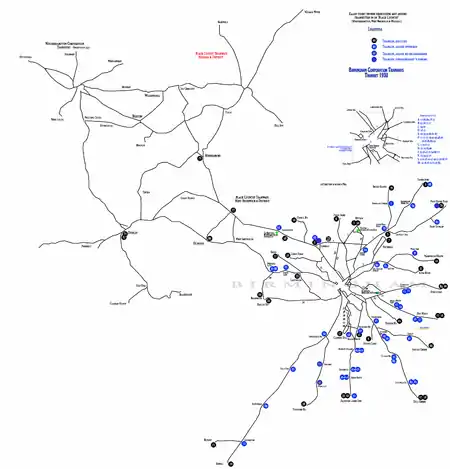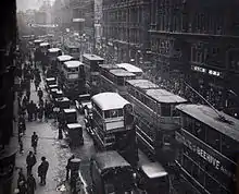 There were a total of 843 trams (with a maximum of 825 in service at any one time), 20 depots, 45 main routes and a total route length of 80 1⁄2 miles (129.6 km).[1]