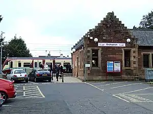 Bishopton railway station serves the village of Bishopton in Renfrewshire, Scotland. The station is on the Inverclyde line, 13 miles (21 km) west of Glasgow Central. It opened on 29 March 1841.[2] The station is managed by Abellio ScotRail.
