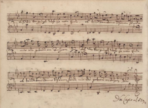 In 1999 the lost archive of the Sing-Akademie zu Berlin was recovered in Kiev.[94][87][95] Nonetheless the manuscript with the five Stölzel arias was still considered lost as late as 2006.[89] That same year the manuscript was however described in a publication by the Bach Archive, edited by Wolfram Enßlin.[87][43] In 2009 a full catalogue of the Sing-Akademie's archive was published, in which the manuscript containing the five arias by Stölzel is indicated as SA 808.[96] By this time "Bist du bei mir" and the four other arias of the SA 808 manuscript were identified as belonging to Stölzel's opera Diomedes.[96] The archive of the Sing-Akademie was transmitted to the Berlin State Library, which made a facsimile of the manuscript containing the Diomedes arias available on their website.[42][87]