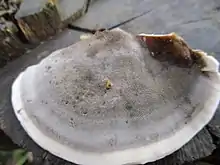 Bjerkandera adusta, commonly known as the smoky polypore or smoky bracket,[2] is a species of fungus in the family Meruliaceae. It is a plant pathogen that causes white rot in live trees, but most commonly appears on dead wood. It was first described scientifically as Boletus adustus by Carl Ludwig Willdenow in 1787.[3] The genome sequence of Bjerkandera adusta was reported in 2013.[4] The species is inedible.[5]