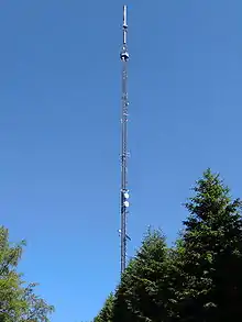 Blåbärskullen transmitter (Swedish: Blåbärskullenmasten) is a facility for FM/TV-broadcasting at Sunne in Sweden, which went in service on September 2, 1960. It used as antenna tower a 323 metres (1,060 ft) tall guyed mast, which was at time of completion one of the tallest structures in Sweden. On December 27, 1979 the top of the mast with the TV-broadcasting antennas fell down as result of an excessive build-up of ice.