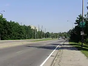 Black Creek Drive is a north-south arterial road[2] in Toronto, Ontario that extends from Highway 400 at Jane Street,[3] near Ontario Highway 401 to Weston Road in the south. Originally intended to be a freeway extension of Ontario Highway 400, it was built instead as an arterial road after public opposition to building freeways into central Toronto. The roadway is named after the Black Creek watercourse, and runs parallel to the creek for most of its route.